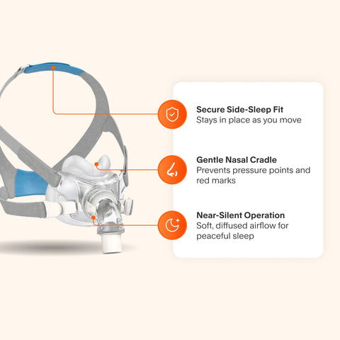 The AirMini and AirFit F30 Full Face Mask Bundle combines Resmed's auto-adjusting travel CPAP with their low-profile full face mask and specially designed mask adaptor—so you can rest easy knowing you have everything you need for travel-ready therapy.