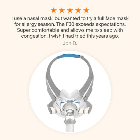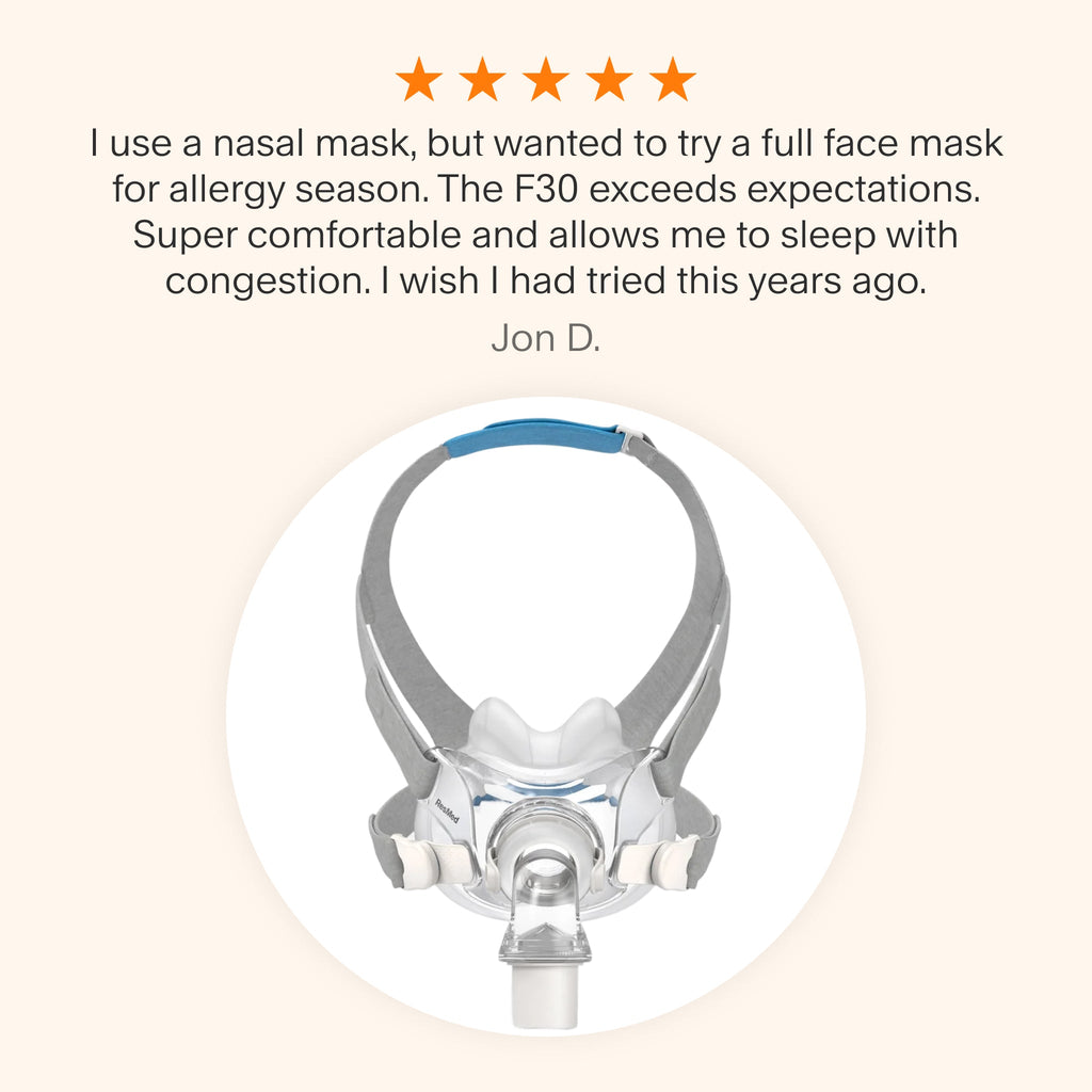 This bundle also features the AirFit F30, a popular CPAP mask that provides full face coverage but with a compact under-nose cushion. With the F30, it's a whole lot easier to find a comfortable sleeping position, plus there are fewer pressure marks to pop up in your vacation photos.