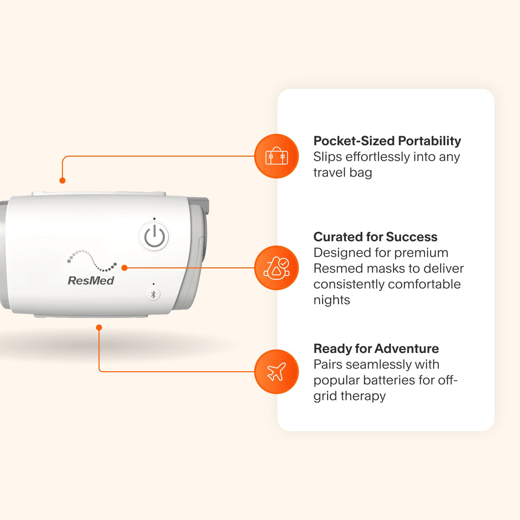 - AirMini AutoSet: Ultra-compact auto-adjusting travel CPAP device