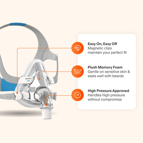 - AirTouch F20 Full Face Mask: Full face mask with a soft, memory foam cushion