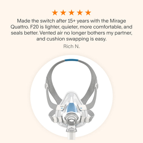 The AirFit F20’s InfinitySeal cushion adapts to movement for a reliable seal across pressure needs, and the open frame supports a clear field of vision before bed. Magnetic clips let you remove or reattach the mask quickly without losing your adjustments. Prefer memory foam? You can swap cushions—learn more on the AirFit F20 product page or consider the AirTouch F20 memory foam cushion.